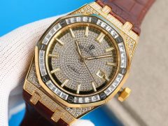 配备黄金钢表带,它的灵感源自于1950至1960年代制造的摺叠铆钉表带,两侧链节以铆钉头连接,呈现出独特的阶梯形结构,匠心独运。